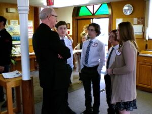 Eleven young people were blessed to receive the Sacrament of Confirmation and eight received First Communion during Archbishop Richard Smith’s April 6-7 weekend visit to the rural Catholic family of parishes for Daysland, Heisler and Killam.