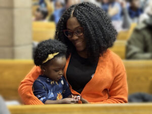 Assumpta Osuizugbe moved to Canada from Nigeria in October 2022, along with her husband and daughter, Gianna, who was born several months after their arrival in Canada. Assumpta shared her gratitude – and surprise – at being invited to participate in the washing of the feet ritual.