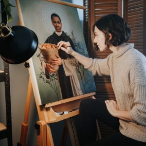 I believe that any time we use our gifts for the good, true, and beautiful, we give glory to God in some small way. Artists have a unique opportunity to do this by participating in God’s own creative nature. To me, this means allowing the Holy Spirit to inspire and shape every piece, so that I paint not only for my own enjoyment but so that God can speak his beauty into the world in a new way. We each have a special role to play, with our particular talents, experiences, intuitions, and even flaws. May we, like Mary, quiet our hearts to listen, so that we can then offer back to God our humble “yes”.
