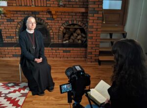 Sister Monika filming her episode of the vocation series, Be Not Afraid.