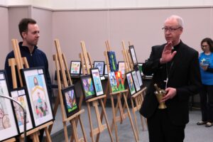 Although the student was not in attendance, Archbishop Smith thanked him for his artistic gift and noted that the young man’s art “stood out to me because that is true for all of us: that the greatest witness that we can make is often non-verbal. It is through the way that we live most often, rather than what we say, that witnesses to the Gospel in our lives.”