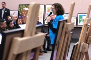 Among the artists was an elementary student from Conseil Scolaire Centre-Nord francophone school division. A non-verbal student, with severe autism, the artist’s work was a colourful framed cross.