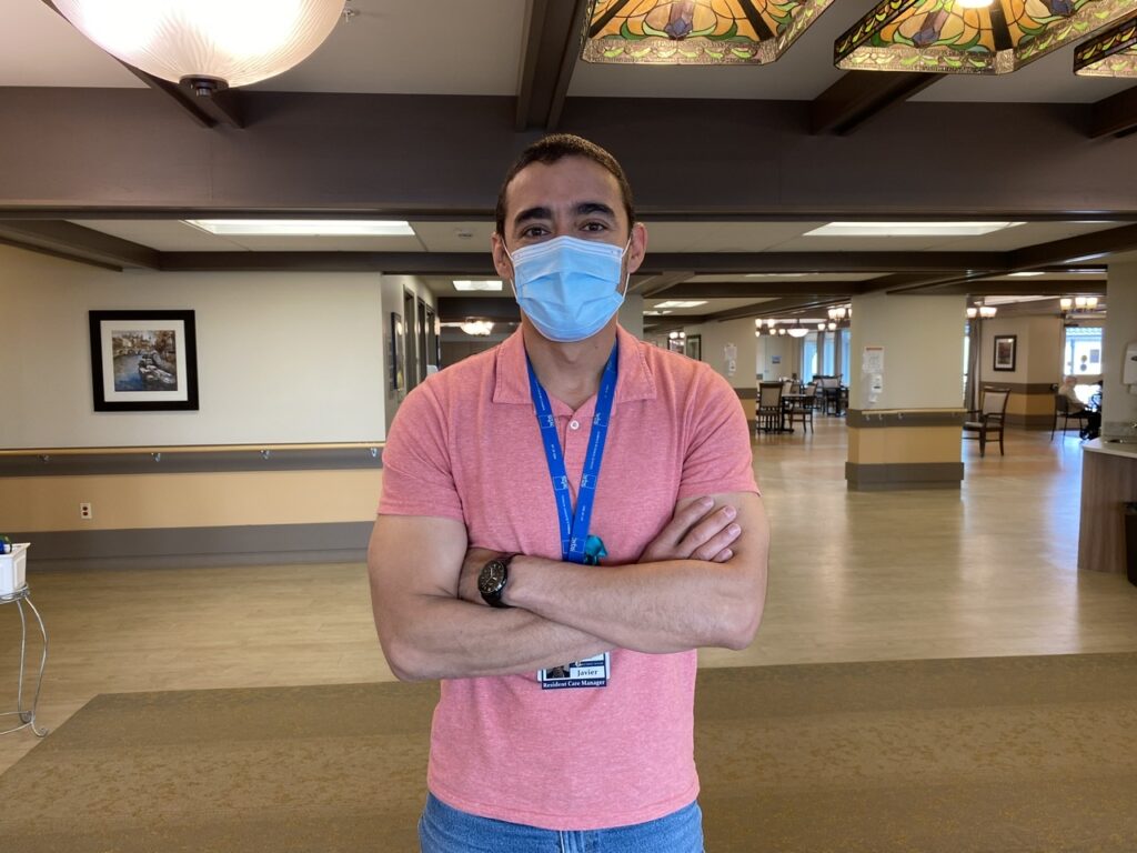 “As I removed my mask and my face shield, I looked up, and this resident was just right in my face, talking to me,” says Javier. “She was just right there in her doorway, smiling at me really close.