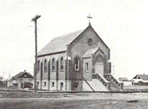 The first St. Joseph\’s Roman Catholic Church (The Brick Church) was built in 1922. The land was initially owned by Robert John Ferguson of Halkirk, Alta. who applied for a homestead in 1911. It was later subdivided, and Dave Siebert purchased and donated the church lots to the Catholic parish.