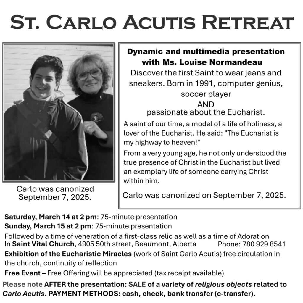 Upcoming Archdiocese Event: St. Carlos Acutis Lenten Retreat March 14-15 at St. Vital parish
