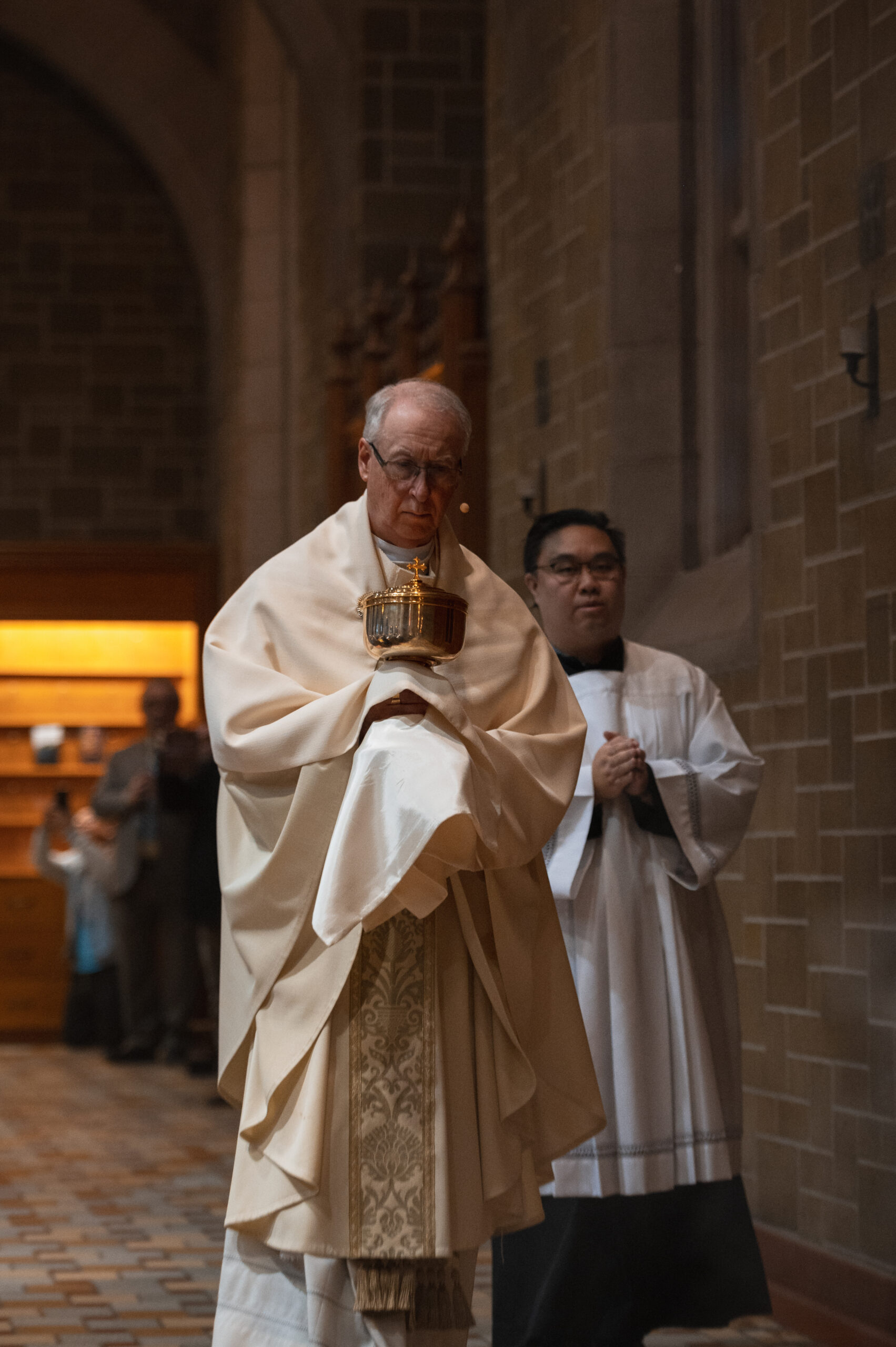 At the conclusion of the liturgy, there is a solemn procession to repose the Blessed Sacrament in preparation for Good Friday.