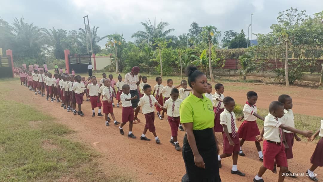 Students process at during the morning assembly at CMI Marriet Kwamang School.