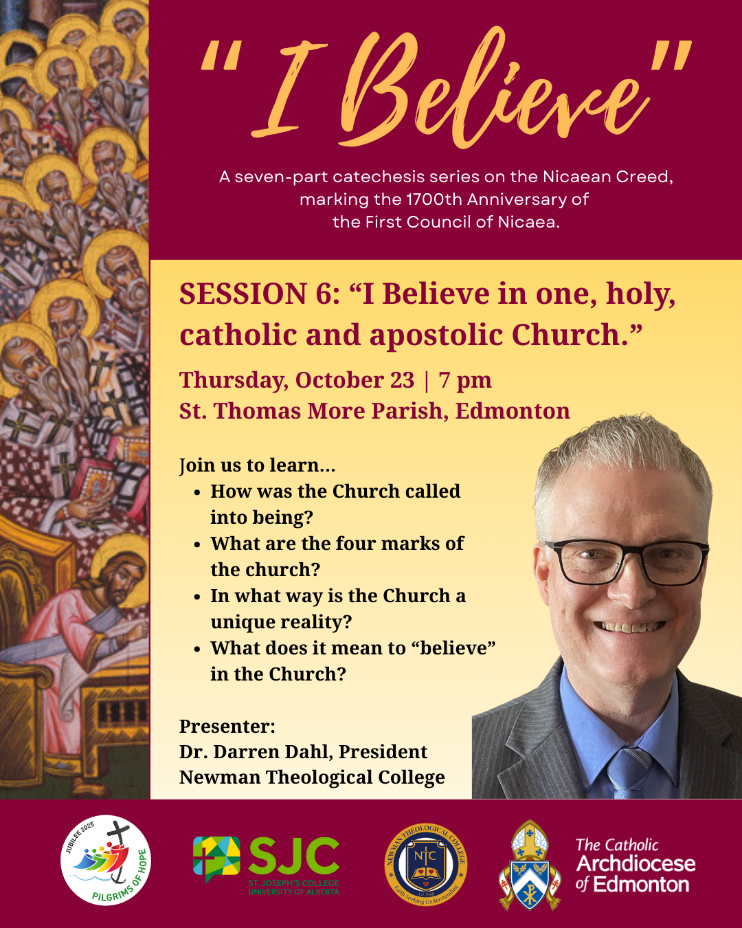This 2025 Jubilee Year marks the 1,700th anniversary of the First Ecumenical Council in Nicaea, which developed the Creed. To mark the occasion, the Archdiocese of Edmonton has launched “I Believe,” a catechesis series in partnership with St. Joseph’s College (University of Alberta) and Newman Theological College.