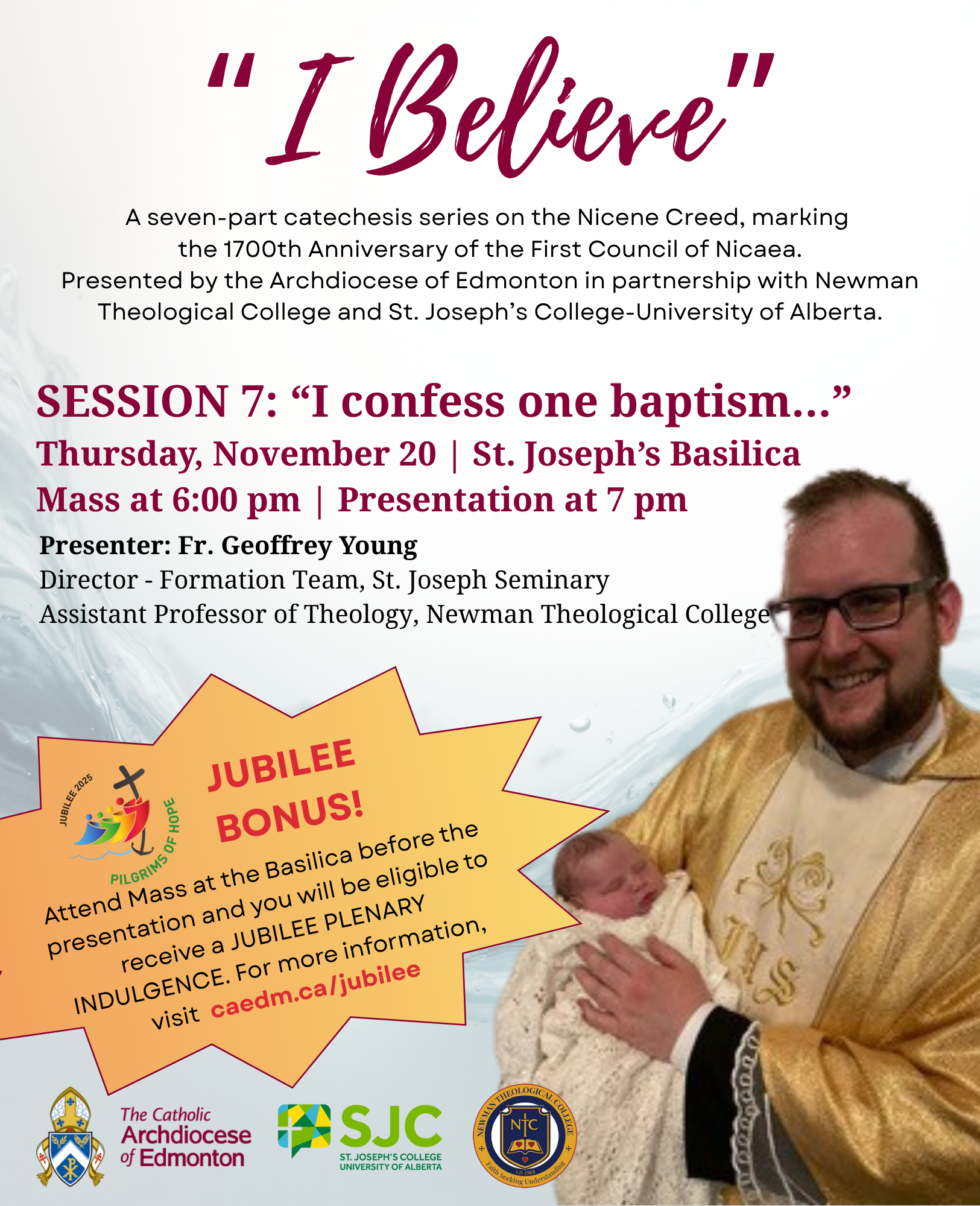 This 2025 Jubilee Year marks the 1,700th anniversary of the First Ecumenical Council in Nicaea, which developed the Creed. To mark the occasion, the Archdiocese of Edmonton has launched “I Believe,” a catechesis series in partnership with St. Joseph’s College (University of Alberta) and Newman Theological College.