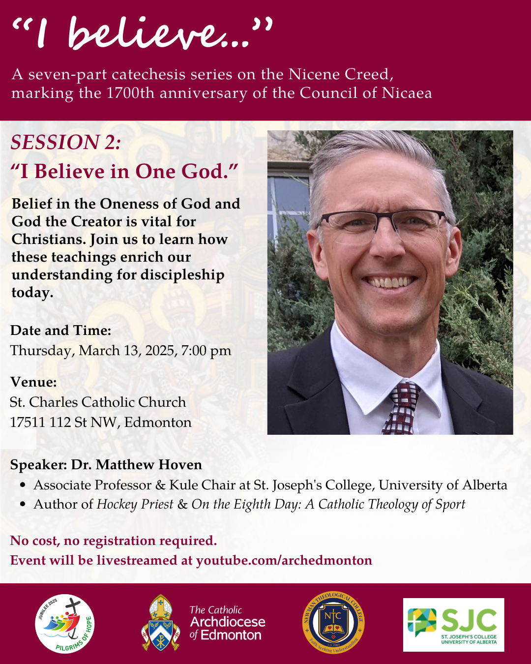 This 2025 Jubilee Year marks the 1,700th anniversary of the first ecumenical council in Nicea, which developed the creed. To mark the occasion, the Archdiocese of Edmonton has launched “I Believe”, a catechesis series in partnership with Newman Theological College and St. Joseph’s College at the University of Alberta.