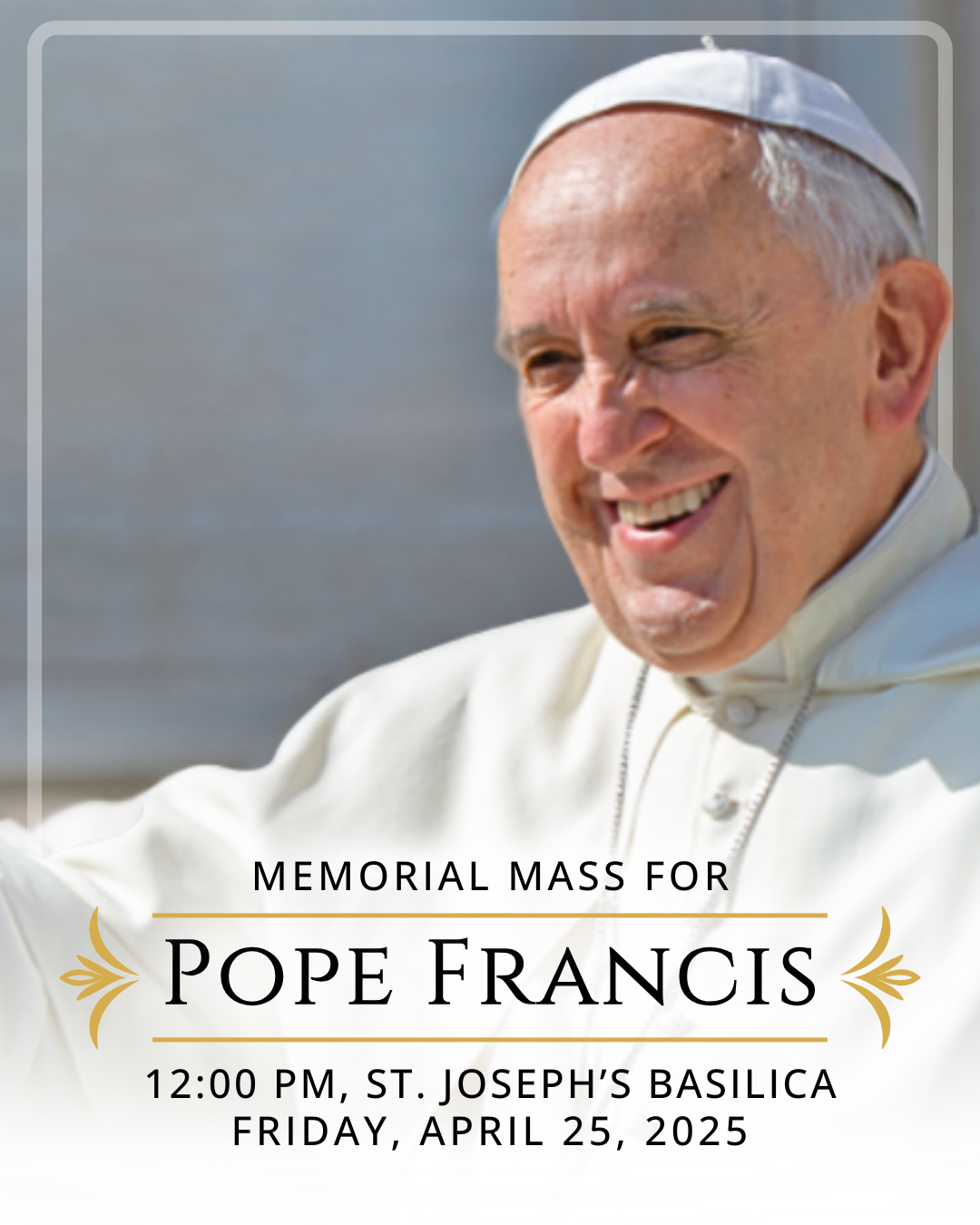 A memorial Mass for the repose of the soul of the Holy Father, Pope Francis, will be held on Friday, April 25 at 12 p.m. at St. Joseph\’s Basilica.