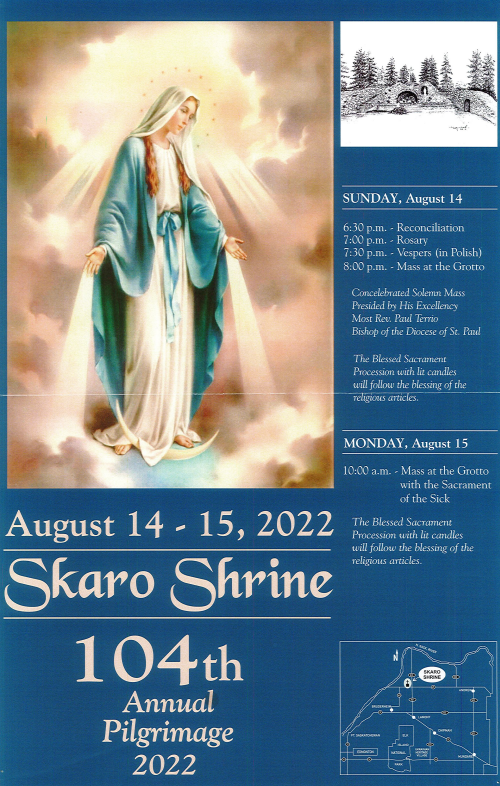 Skaro Pilgrimage on August 14-15August 11, 2022News Home News Skaro Pilgrimage on August 14-15 Details about the pilgrimage are available here: OLA Bulletin Share it on the Social Channels Share on Facebook Share on LinkedIn Share on X (Twitter) Share on WhatsApp Share on Email Previous Post Grotto of the Immaculate Conception to be dedicated Sunday, August 14th Next Post Landry: Series will reflect on what we believe and what we do