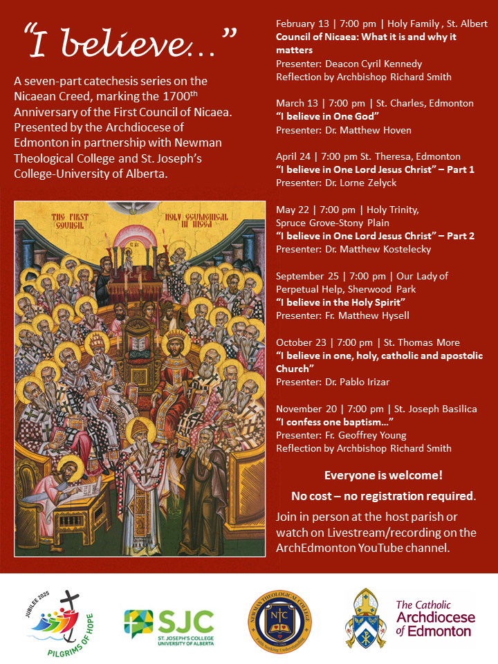 The 2025 Jubilee Year marks the 1,700th anniversary of the first ecumenical council in Nicaea, which developed the creed stating that ‘the Son is consubstantial with the Father.’ To mark the occasion, the Archdiocese of Edmonton is launching a seven-part catechesis series on the Nicene Creed on Feb. 13.